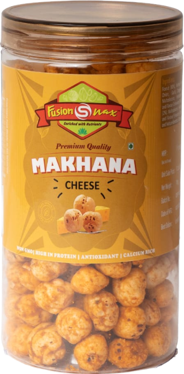 Foxnut (60%), Refined Rice Bran Oil, Spice & Condiments (Yellow Chilli, Onion, Garlic, Oregano (1.5%), lodized Salt, Sugar, Milk Solids (2%), Maltodextrin, Hydrolysed Peanut Protein, Acidity Regulator (INS 296), and Flavour Enhancer (INS 635), Oregano (1.5%), lodized Salt, Sugar, Milk Solids (2%), Maltodextrin, Hydrolysed Peanut Protein, Acidity Regulator (INS 296), and Flavour Enhancer (INS 635), Natural Colour Paprika Oleoresins (INS 160) and Nature Identical (Cheese & Capsicum) Flavouring Substances.